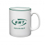 White mug with white inner. Printed with RMT logo and web address two sides.