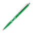 Retractable ballpen with metal fittings, metal push-button with plastic inlay in barrel colour. Fitted with a black ink.